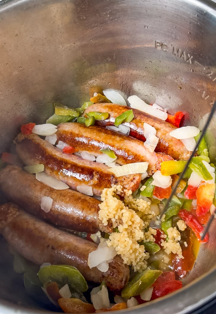 - Brown the sausages by placing them in a pan (or seer mode on an InstantPot), and cook them until they turn nice and brown on all sides.